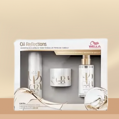DescriçãoA Linha Wella Oil Reflections proporciona maciez e luminosidade para todos os tipos de cabelo. Tratamento promove nutrição e hidratação intensa, cor protegida. Mantenha seu cabelo hidratado com o kit Wella Oil Reflections!. * RESULTADO:. Hidratação . * SUGESTÃO DE USO:. Shampoo. 1. Aplique, massageie, deixe agir por 2 minutos;. 2. Enxágue. Máscara. 1. Aplique a máscara nos cabelos, do comprimento a pontas;. 2. Deixe o produto agindo por 5 minutos e enxague em seguida. Óleo . 1. Aplique o produto nos cabelos úmidos ou secos;. 2. Sem enxágue. * OBSERVAÇÕES:. Imagem Meramente Ilustrativa. * ITENS INCLUSOS:. 1 Shampoo Wella Professionals Oil Reflections 250 ml. 1 Máscara de Brilho Wella Professionals Oil Reflections 150 ml. 1 Óleo Capilar Wella Professionals Oil Reflections 30 ml.