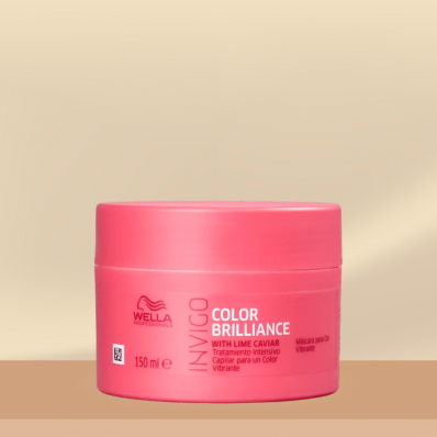 Wella Professionals Invigo Color BrillianceMáscara de tratamento para cabelos coloridos. Wella Professionals Invigo Color Brilliance mantém a cor linda e vibrante enquanto cuida dos fios. Ela conta com alta tecnologia e ativos antioxidantes que combatem o desbotamento e protegem da mudança de tom.  A Máscara Capilar Wella Professionals Invigo Color Brilliance proporciona proteção da cor por até 7 semanas. Ela tem uma fórmula rica em vitaminas que nutrem o cabelo. Seus fios ficam saudáveis, protegidos do desbotamento e com a cor linda. Além disso, seu perfume é amadeirado cÃÂtrico floral, o que se traduz em um aroma sofisticado.  O embaixador de Wella Professionals Bruno Lotufo diz: “Invigo Color Brilliance tem uma fragrância muito boa e, outra coisa que gostei muito, é a leveza do produto. Ele trata sem pesarâ€.  Â Conselho de AplicaçãoAplique a máscara sobre os fios limpos e úmidos, pelo comprimento e pontas. Espalhe massageando mecha a mecha. Deixe agir por 5 minutos e, em seguida, enxágue.   Nossos Experts Ensinam  Para garantir que a máscara seja aplicada de maneira uniforme por todo cabelo, divida os fios em mechas ao passar o produto, ou conte com o auxÃÂlio de um pente para distribuir por completo.  ÂÂÂÂCaviar de Lima: possui alta concentração de vitaminas e antioxidantes, que ajudam a prolongar a vivacidade da cor e proteger.  Histidina e Vitamina E: ajuda a controlar o processo de oxidação dos fios após a coloração a fim de proteger a cor.  Moléculas Encapsuladas de Cobre: mantêm o tom vibrante. ÂÂSeu cabelo fica tratado e com a cor preservada por até 7 semanas. Os fios ganham maciez, brilho e proteção do desbotamento ou alteração do tom. |
